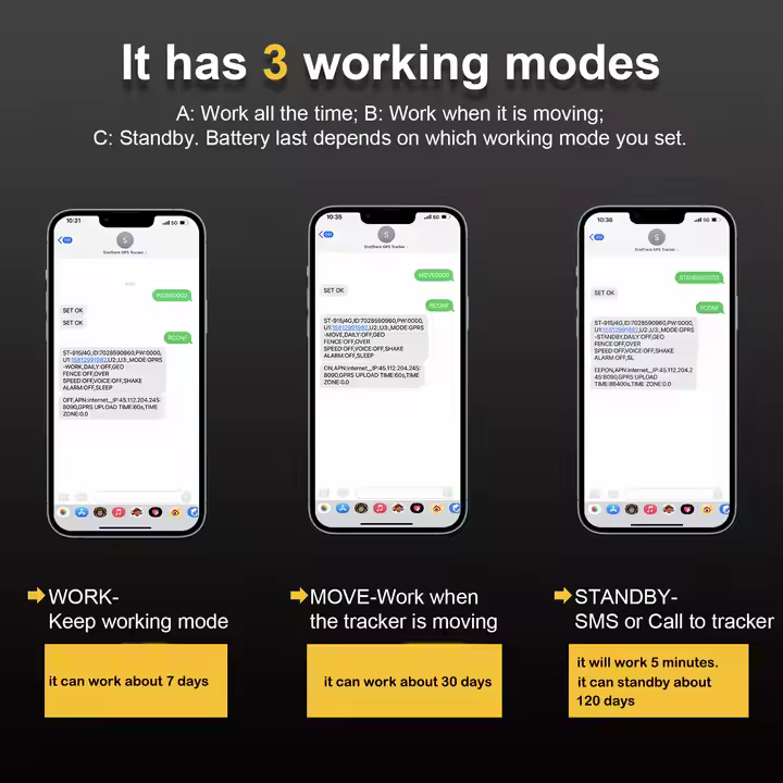 - 3 načina rada: stalno praćenje (šalje lokaciju u određenim vremenskim intervalima), praćenje prilikom kretanja, standby